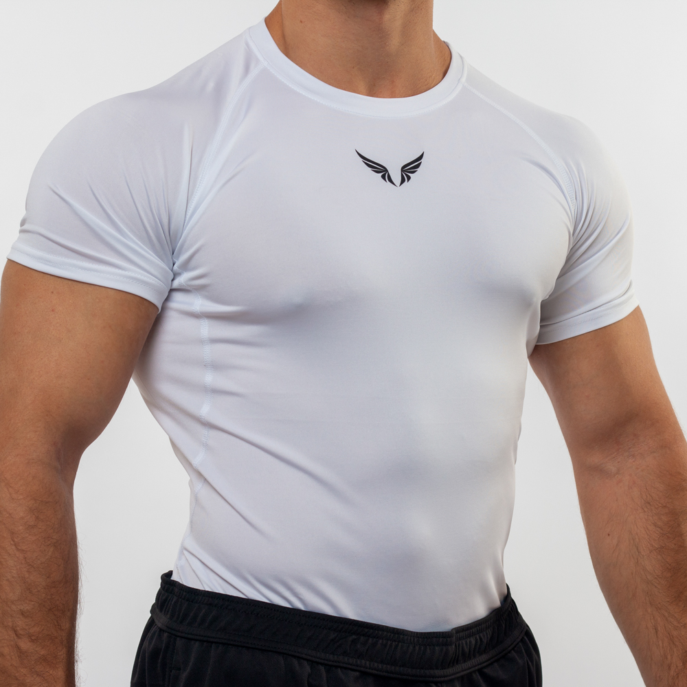 Teljesítményre tervezve: a kompressziós szabás támogatja az izmokat, fokozza a vérkeringést és segíti a gyors regenerációt. Rugalmas, légáteresztő anyaga kényelmet és szabad mozgást biztosít minden edzés során. Az Aetheris fehér kompressziós póló ideális választás intenzív sporthoz és erőnléti edzésekhez.